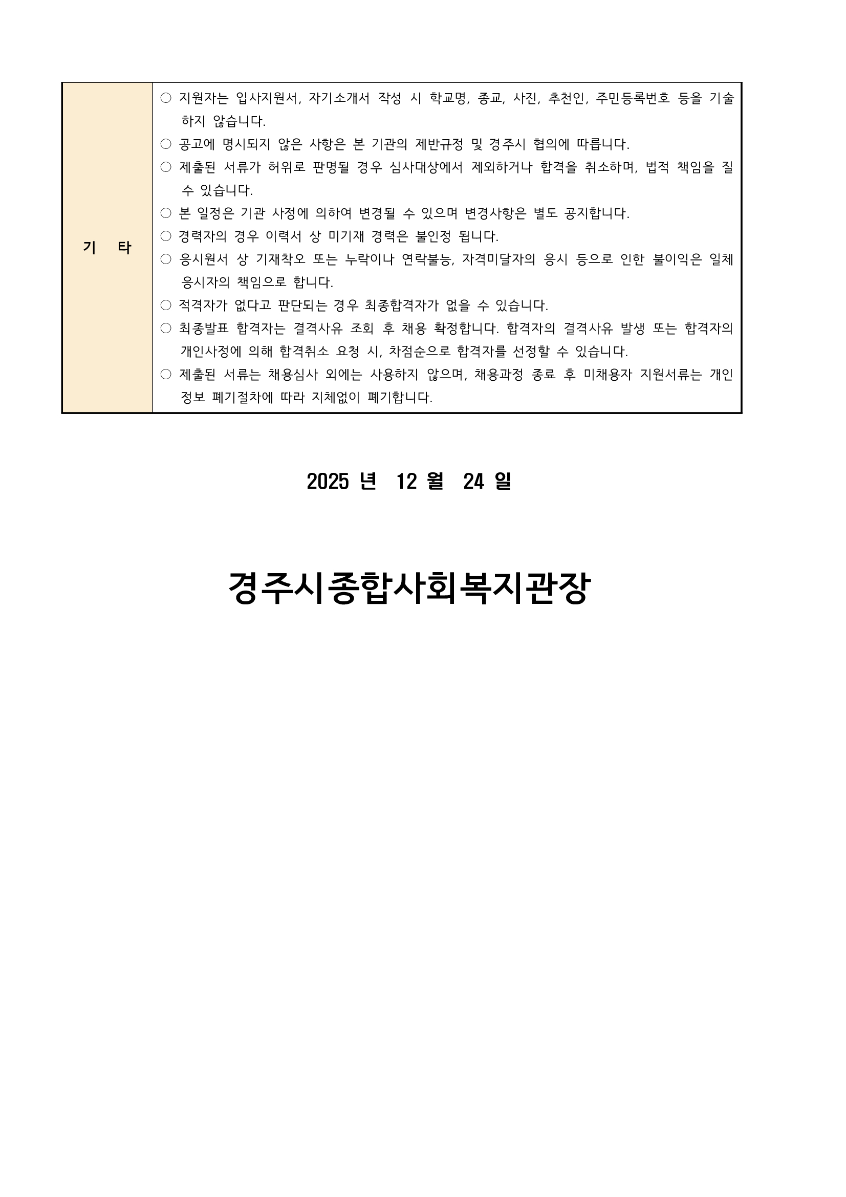 [채용공고 2025-10-2]2025년 12월 경주시종합사회복지관 직원 공개채용 재공고(경주시기초푸드뱅크)