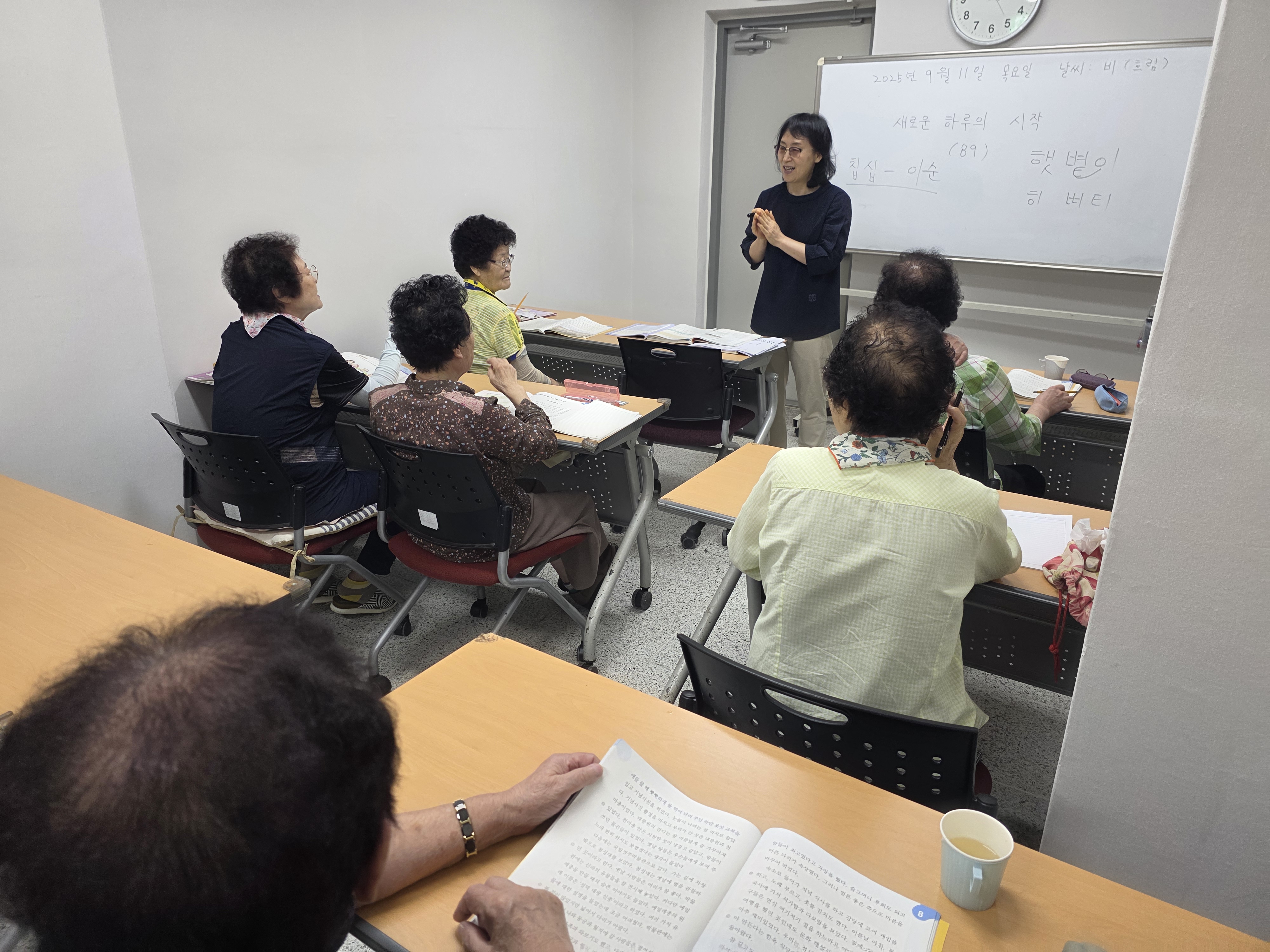 이번 달에는 자연환경과 관련된 한문을 배우고 약 봉투와 진료비 영수증을 살펴보며 생활 속 언어 이해를 높이는 시간을 가졌습니다. 또한 일과를 글로 작성하며 자기 표현력을 기르는 활동을 진행하였습니다. 이를 통해 어르신들이 실생활 적용력과 표현력, 사고력을 고루 향상하게 시킬 수 있었습니다.