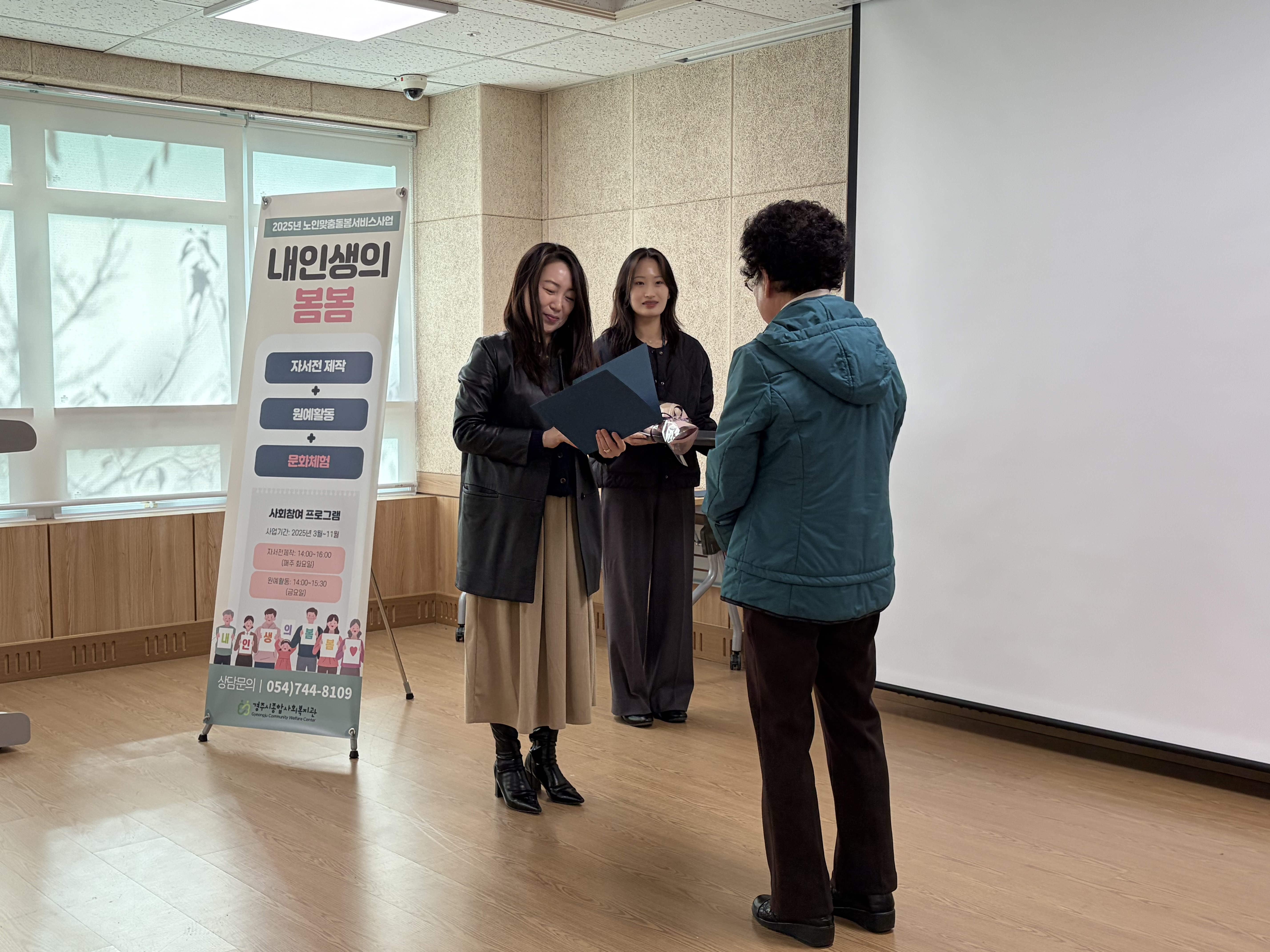 앞으로도 노인맞춤돌봄서비스팀은 어르신들의 경험을 존중하고, 스스로의 삶을 기록하며 자존감 향상과 정서적 안정에 기여할 수 있는 프로그램을 지속적으로 운영하겠습니다.