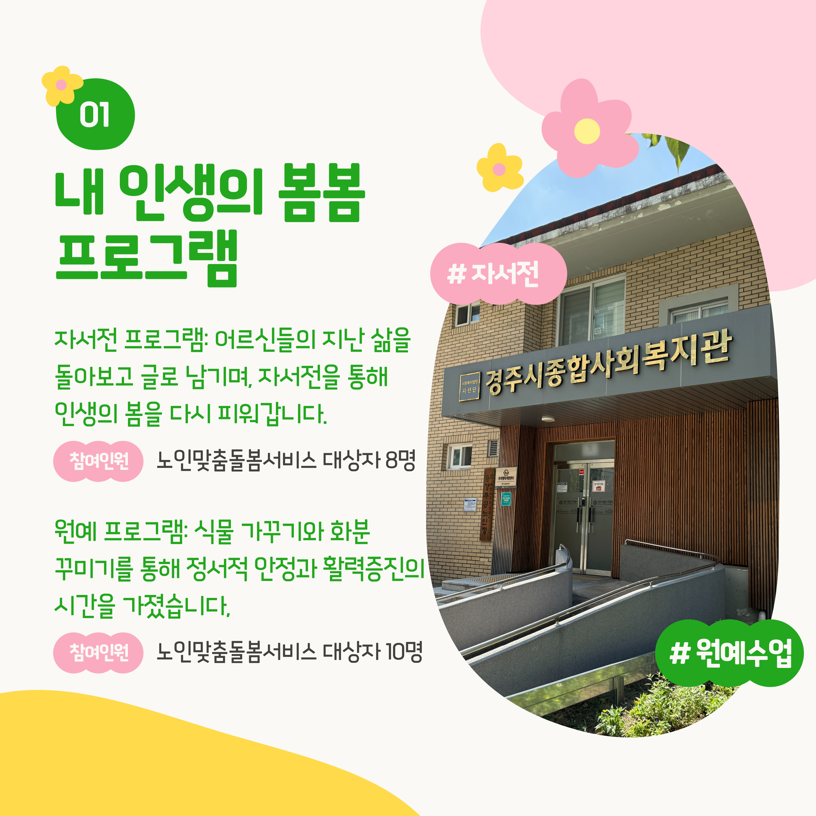 [카드뉴스] 3분기 노인맞춤돌봄서비스사업 사회참여 프로그램 내 인생의 봄봄