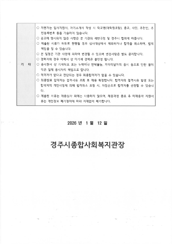 [채용공고 2026-1]2026년 1월 경주시종합사회복지관 직원 공개채용 공고(경주시기초푸...